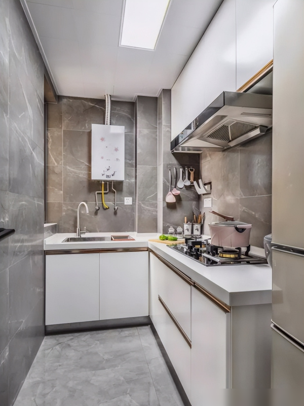如果是这种整套瓷砖材质的橱柜,整体看上去会比较单调,而且没有什么设计感,实用性和美观性都不够高。